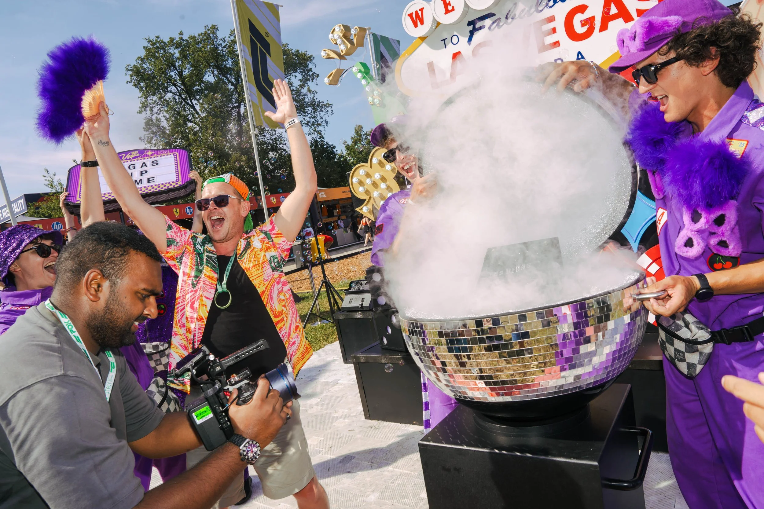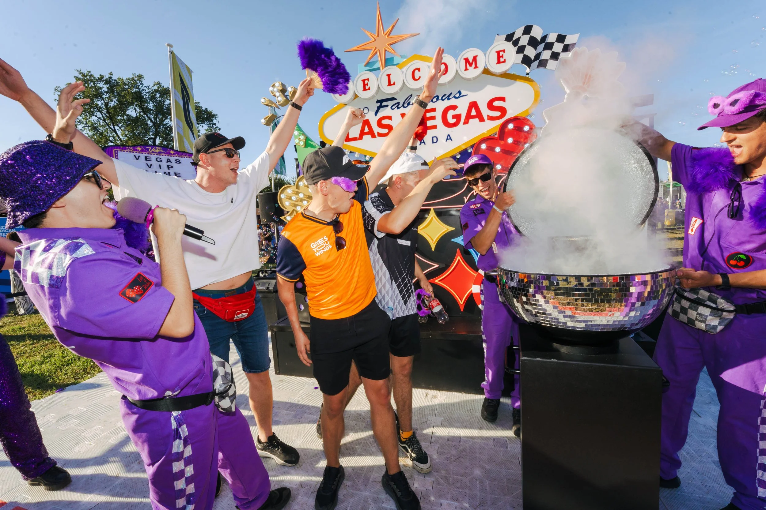 In a reference to Las Vegas’ iconic “Neon Graveyard” we made a custom neon photo-op that celebrates both the city and F1. At each race, we cast a Vegas “pit crew” to keep fans hyped and periodically over the weekend, we’d surprise a few lucky groups with over-the-top ‘showstopper moments’ in which we’d get the party going and roll out a massive disco ball containing exclusivew