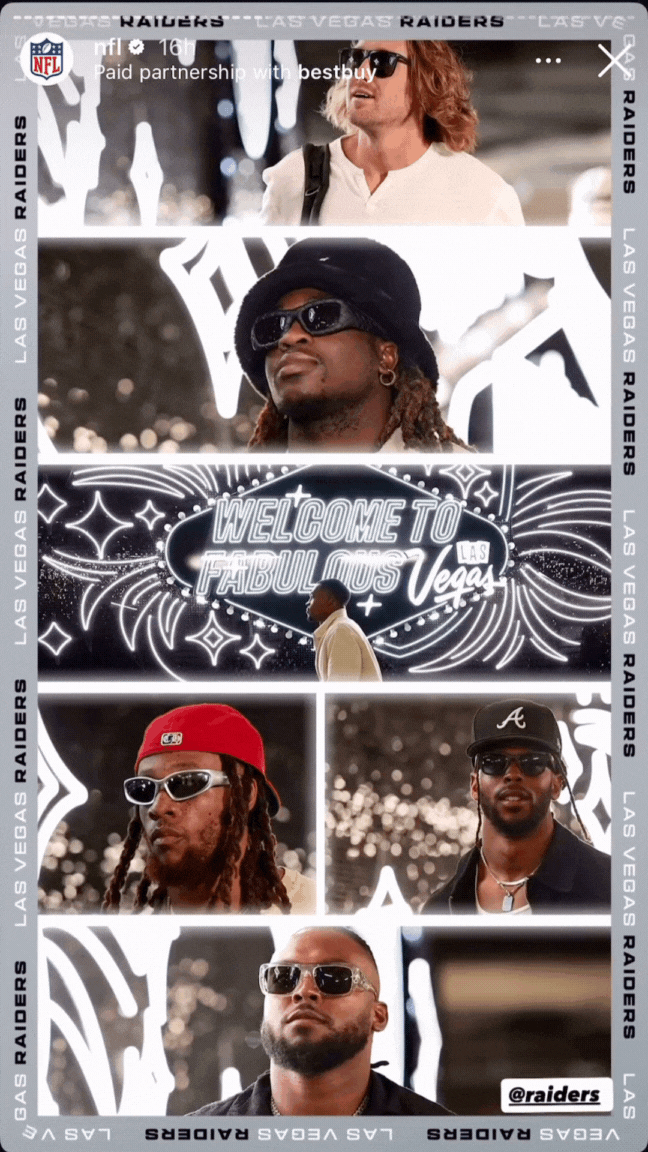 Unveiled at the Raider’s first home game of the 2025-2026 season, it was covered on NBC and ESPN’s NFL broadcasts, as well as by GQ, Sports Illustrated and NFL’s social channels. It was even given an in-broadcast shoutout by Scott Van Pelt.
